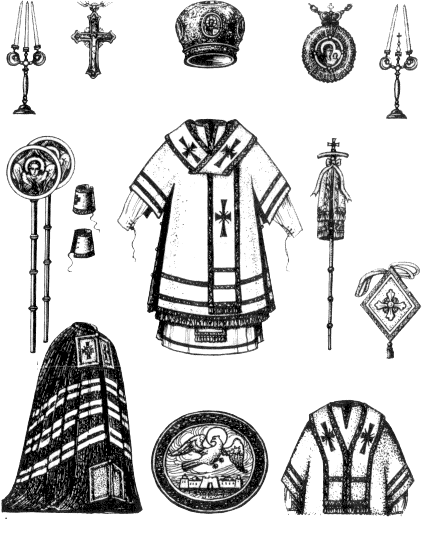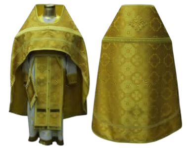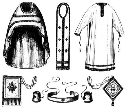 მღვდლის შესამოსელი (მიმდევრობით სურათზე): ჯვარი;