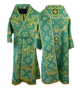 მწვანე მარადიული სიცოცხლის ფერი. იგი მიღებულ იქნა წმინდანთა ხსენების დღეებში და მოწმობს იმაზე, რომ მათი მონაზვნური ღვაწლი აცოცხლებს ადამიანს მაცხოვართან შეერთებით და ამაღლებს მას ცათა სასუფეველში. ეს ფერი გვხვდება წმინდანთა, ასკეტების, წმიდა სალოსების ხსენების დღეებში, უფლის იერუსალიმში შესვლის დღესასწაულზე, სამების დღესა და სულიწმიდის დღეს.