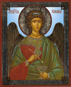 წმიდაო დიდო მთავარანგელოზო რაფაელ! უფლისა მიერ შენდამი ბოძებულითა მადლითა ძალთა და ნიშთა აღასრულებ სოფელსა შინა და სნეულთა განჰკურნებ უძლურებასა და ვნებათა, აწ განხადე საეშმაკონი ვნებანი ჩუენგან და გჳჴსენ სენთა და სალმობათაგან, და დაგვიცევ ყოვლისაგან ჭირისა და კუეთებისა.