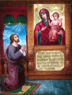 იხარებენ დღეს მართალნი სულითა, განმადიდებელნი მხურვალისა შუამდგომელისა კაცთა მოდგმისასა და ყოვლადპატიოსნისა ხატისა მისისა მომართ მოლტოლვილნი ხმობენ: ჰოი, ყოვლადმოწყალეო დედოფალო ღვთისმშობელო, მოგვანიჭე სიხარული მოულოდნელი ჩვენ ცოდვითა და მწუხარებითა დამძიმებულთა ამათ და მიხსნენ ყოვლისაგან ბოროტისა, მლოცველნი ესე ძისა შენისა, ქრისტეს ღვთისა ჩვენისა მომართ და აცხოვნენ სულნი ჩუენნი.