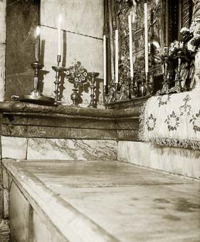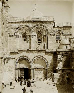 როდესაც გარემოადგა იერუსალიმსა ჯარითა სალადინი, მონაზონთა, შიშის ზარისაგან შეპყრობილთა, რათამცა ეს ოქროს ფიცარი, საფარებელი წმ. საფლავისა, არ ჩავარდნოდა ხელში ქალაქის დამპყრობელსა, ისწრაფეს აგლეჯა მისი მარმარილოსაგან, მაგრამ რადგანაც ვერ შესძლეს აგლეჯა ტყვიით შედუღებულის ლურსმებისა, მაშინ გახერხეს მარმარილო და ამ სახით მოაშორეს მარმარილოს ოქროს ფიცარი, და ამასთანავე მოამტვრივეს მარმარილოს ქვის ოთხი კუთხეცა.