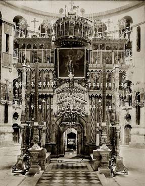 თაყვანივეცით ქრისტეს საფლავსა. გამოუთქმელია მორწმუნე გულისათვის ის საღმრთო წამი, როდესაც ქრისტეანე პირველად ეღირსება ამ სულიერს ნუგეშსა და სიხარულსა. შემდეგ მივმართე ჩემს თანამოგზაურს ორენბურგელს მ. დეკანოზს ი. სოლომინს და ვუთხარი: გამოვთქვათ ჩვენი აწინდელი სარწმუნოებრივი გრძნობანი-მეთქი. მკითხა მან, რითაო? შესაბამის გალობითა, ვუპასუხე მე. შემდეგ მკითხა: ნებას მოგვცემენო? მე მივუგე: ვის შეუძლიან აღგვიკრძალოს? მაშინ ვიწყეთ ჩვენ გალობა შემდეგთა საგალობელთა: „მშვენიერმან იოსებ ძელისაგან გარდამოხსნა თვით უხრწნელი ხორცი შენი...“ „ქრისტე აღსდგა მკვდრეთით“ „აღდგომასა შენსა, ქრისტე მაცხოვარ, ანგელოზნი უგალობენ ცათა შინა“ „აღდგომა ქრისტესი ვიხილეთ“ „ანგელოსი ღაღადებს: მიმადლებულო წმ. ქალწულო, გიხაროდენ“ „განათლდი, განათლდი, ახალო იერუსალიმ“ „ხორცითა მიიძინე, მაცხოვარ...“ შემდეგ გვანიშნა ხელით ბერძნის მღვდელ-მონაზონმა, იქ მდგომარემ, რომ ჟამი არს ამიერ განსვლისაო. გამოვედით რა ქრისტეს საფლავის სამლოცველოდგან, ვიხილეთ მუნ მდგომარენი ფრანგთა სამღვდელონი მონაზონნი, უკვე შემოსილნი, რომელნიც ელოდებოდნენ ჩვენს გამოსვლასა. როგორც შევნიშნეთ, სასტიკად შემოგვხედეს და ვითარცა შემდევ ვცანით, იმისათვის იყვნენ უკმაყოფილონი, რდშ ნახევარ საათის განმავლობაში ვისარგებლეთ მათთვის დანიშნულ ჟამით, შემდეგ დამშვიდდენ, როდესაც გაიგეს, რომ ჩვენ ბერძენნი არ ვიყავით, არამედ ახლად მოსულნი მლოცავნი რუსეთით და საქართველოით. უფროსი ფრანგთა სამღვდელო შევიდა ქრისტეს საფლავის სამლოცველოში, ხოლო სხვათა მონაზონთა გარეშე საფლავისა დაიჩოქეს, რადგანაც შიგნით საფლავის წინაშე ოთხის კაცის მეტი ვერ გაიმართება.