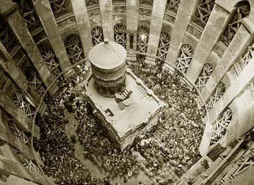 პატრიარქი და მღვდელმთავარნი გოლგოთაზედ სწირავენ უმიტროდ პატივსადებლად ამ ადგილზედ იესო ქრისტეს დამდაბლებისა.