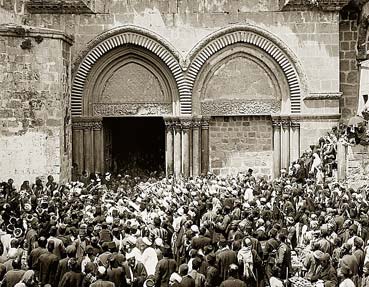 დიდს შაბათს, დილითგან ადრე, იკრიბებიან წმ. საფლავის ტაძარში მომეტებული ნაწილი მართლმდიდებელთა ქრისტეანეთა ადგილობრივ მცხოვრებთა და ყოველნი მლოცავნი, რომელნიც მოსრულნი არიან ყოველთა კიდეთაგან ქვეყანისათა ფერად-ფერადთა ეროვნებათა, გარდა ლათინებისა, და დალაგდებიან ტაძრის სხვა და სხვა კუთხეებში, სადაც ვინ ჰპოვებს უმჯობესად. ყოველნი ლამპარნი და სანთელნი, რომელნიც მოიპოვებიან ტაძარში, დაიშრიტებიან. მრავალ-რიცხვოვანი ჯარიც ოსმალთა დალაგდება გარეშემო წმ. საფლავის სამლოცველოსი და საშუალ ადგილებზედ ტაძრისა ასაშორებელად და დასამშვიდებელად უწესოებისა, რომელიც შესაძლებელია მოჰხდეს ტაძარში შეჯახების დროს ამ დღეს ამოდენთა ერთა და ხალხთა შორის.