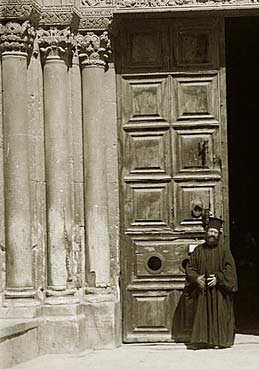 ქრისტეს აღდგომის ტაძრის კარების გარეთ, მარცხნივ, საშუალო სვეტზედ არის ქართული წარწერა ასომთავრული, რომლიდგანაც ამოვიკითხე მხოლოდ შემდეგი: „ქრისტე მაცხოვარ, შეიწყალე ჯარვარ...“ გაგრძელება ამოფხვრილია, რადგანაც ეს ადგილი სვეტისა გაპობილია. სვეტის გასქდომის მიზეზად აი რას მოუთხრობგნ გარდმოცემით: 1549 წელსა, დიდს შაბათს, არ მიუციათ ნება ძალმომრეობით მართლ-მადიდებელთა ბერძენთა პატრიარქისათვის, რათა შესულიყო და მიეღო ქრისტე მაცხოვრის საფლავიდგან საღმრთო ცეცხლი, რომელიც სასწაულებრივ ყოველს დიდს შაბათს აღმობრწყინდება ცხოველ-მყოფელ საფლავიდგან. ეს უფლება ანუ უპირატესობა ქრთამისა გამო ოსმალთა ფაშას გარდაეცა სომეხთა პატრიარქისათვის. თუმცა-და შესულა სომეხთა პატრიარქი ქრისტეს საფლავის წინაშე, მაგრამ სასწაულებრივ არ ანთებულა სანთელი მის ხელში, არამედ საღმრთო ცეცხლი აღმობრწყინვებულა ქრისტეს საფლავიდგან და გამოვარდნილა გარეთ კედელში ამ ზემოხსენებულის სვეტით, და იქიდგან აღუნთიათ სანთელი მართლ-მადიდებელთა, მდგომარეთა თვისის სამღვდელოებით ეკკლესიის გარეთ კარებთან. ხოლო სომეხნი ამბობენ, რომ ამ სვეტიდან გამოჩნდებოდა წმიდა ცეცხლი საზოგადოდ ღარიბთა მლოცველთათვის, რომელთაც არ შეეძლოთ გარდახდა ჩვეულებრივის ხარკისა უფლებისათვის დასწრებისა ტაძარში დიდს შაბათსა, წმიდა ცეცხლის გამოჩენის წამსა.