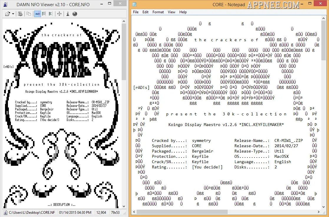DAMN NFO Viewer - удобное приложение, которое позволяет вам просматривать файлы NFO . Файлы NFO представляют собой текстовые документы, которые обычно обнаруживаются как вложение в другие файлы, содержащие расширенную информацию или инструкции относительно этих файлов. Хотя вы действительно можете открыть их с помощью Notepad (они являются типом текстового файла), настоятельно рекомендуется иметь специальное приложение, такое как DAMN NFO Viewer, поскольку они обычно содержат красиво оформленную ASCII-графику, которую Notepad не очень хорошо отображает. DAMN NFO Viewer - это, как вы можете сказать по названию, программа, специально разработанная для просмотра файлов NFO и DIZ. Он быстрый, эффективный и простой в использовании. DAMN NFO Viewer имеет аналогичный интерфейс с записью Notepad, и вы можете настроить пользовательские цвета и шрифты. Он также поддерживает перенос слов. Но это не все. DAMN NFO Viewer также включает в себя другие интересные функции, такие как интеграция с оболочкой (так что файлы NFO автоматически открываются с помощью DAMN NFO Viewer) и copy-on-select, который копирует любой выделенный текст в буфер обмена, не нажимая никаких дополнительных клавиш.