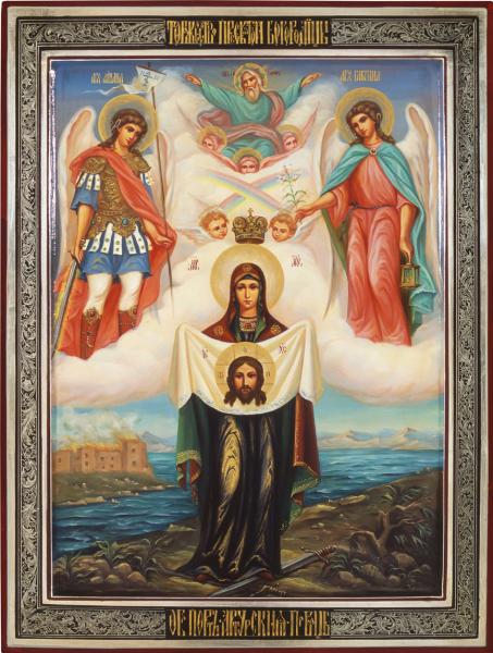 ამ ხილვით თავზარდაცემული მეზღვაური ძლიერ შეცბუნდა, მაგრამ ღვთისმშობელმა გაამხნევა და უთხრა: “შორეული ზღვის სანაპიროზე ქვეყანას დიდი ბრძოლა ელის. დაწერე ხატი, რომელზეც აღწერ ამ ხილვას და გაგზავნე იგი პორტ-არტურში. თუკი ჩემი ხატი მოთავსდება ქალაქის კედელში, მართლმადიდებლები გაიმარჯვებენ”. შემდეგ არაჩვეულებრივმა, დამაბრმავებელმა სინათლემ მოიცვა ოთახი და ჩვენება გაქრა.